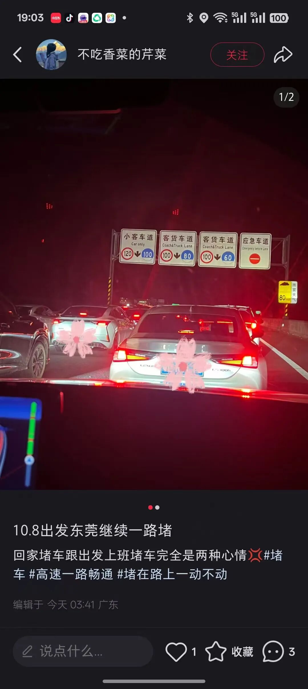 遇到临时管控,需要跟车通行时,注意低速慢行,保持车距,不要随意变更车道产生新的拥堵。