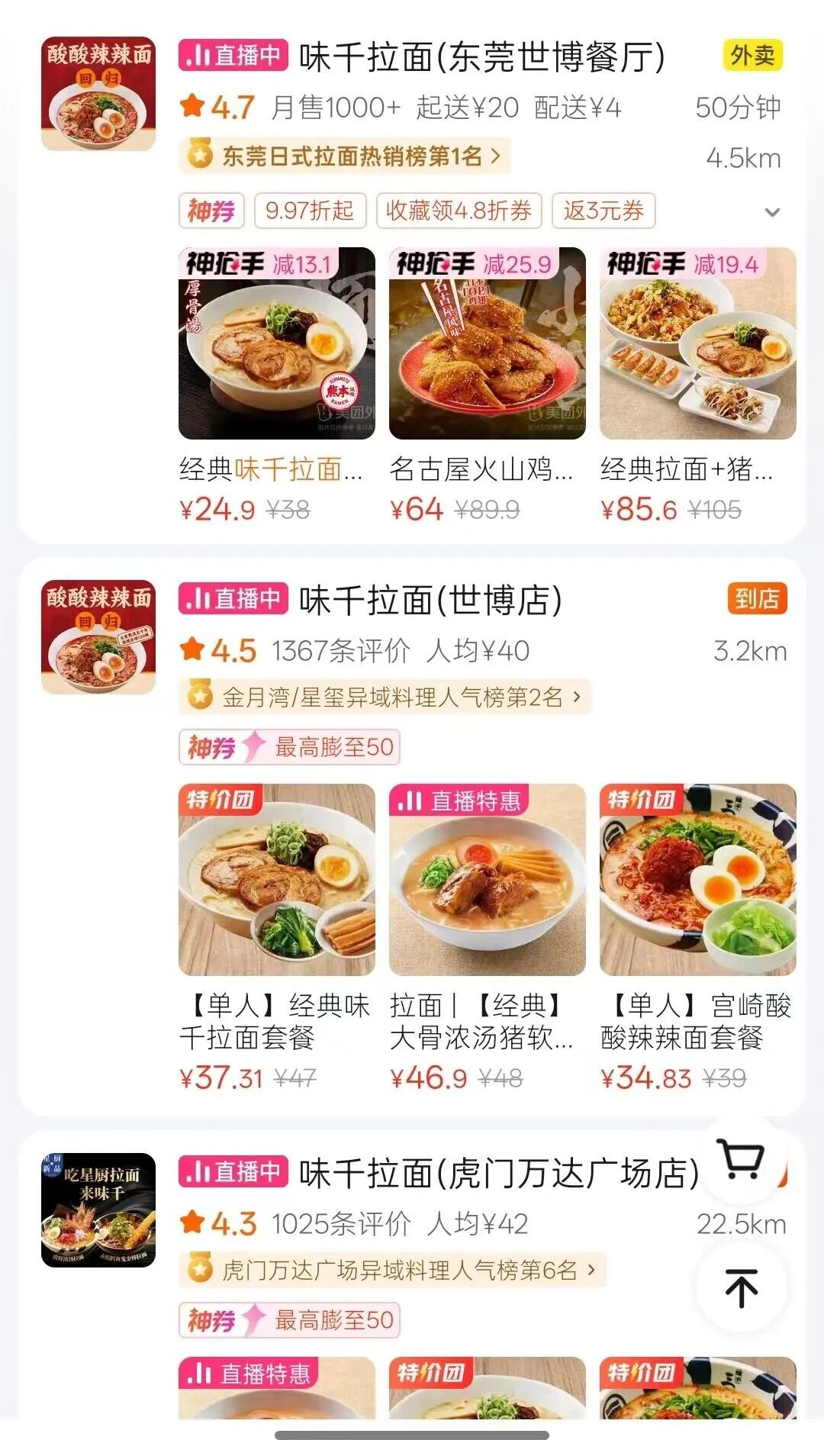 记者查询某点评软件发现,味千拉面在东莞有3家门店,其中有不少都是人气榜和好评榜门店