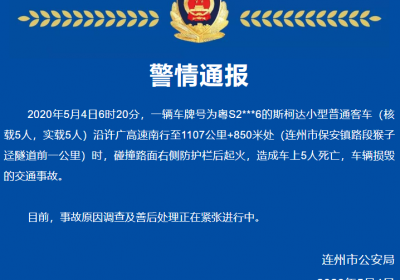 最近大家都五一出游散心,但跑高速切记要注意行车安全!今日,一辆粤S小车在高速上发生车祸,车上5人遇难!最近虽然高速车辆有所减少,但风险仍依旧,2天前,阳江也发生了重大车祸,3人不幸…