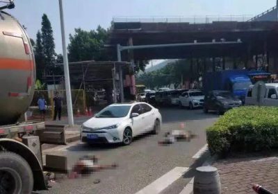 8月16日中午时分东莞望牛墩发生一起车祸事发水乡大道与望洪路交汇处▼一辆油罐车在右转弯时碾压到3名路人从网友拍摄的图片和视频看3名路人躺在路上血肉模糊,惨不忍睹▼没有人想看到这一幕…