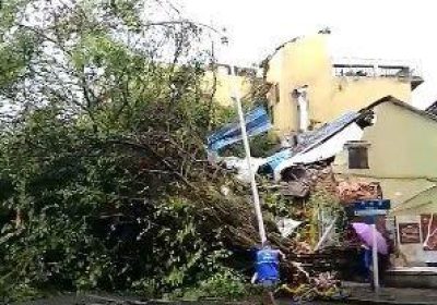 今天上午东莞受高空槽和切变线影响白天骤变黑夜瞬时天昏地暗!暴雨一下杀到并伴有强雷电和8级左右短时大风这场狂风暴雨没有持续多久但却造成了不少伤害万寿路多棵大树倒下造成路边车辆受损和道…