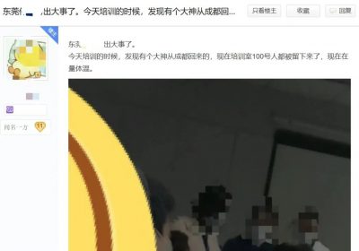 12月8日晚 某贴吧传出这样一条消息 ↓↓↓对此大岭山警方通报↓↓↓ 经查,12月8日,该公司在对一批新进员工进行上岗前培训时,经行程查询发现一名员工是从成都市郫都区非中风险区返回…