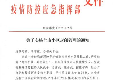 黑龙江省绥芬河市新冠肺炎疫情防控指挥部4月7日发布通知,为进一步加强新冠肺炎疫情防控期间的管控工作,严格做好“内防扩散,外防输入”,位于黑龙江省中俄边境的绥芬河市所有小区自4月8日…