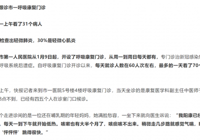 比较起“重阳”,我们更应该担心是的“长新冠”——也就是“阳康”之后,身体依然有不适症状的问题。近日,杭州专门开设了“阳康”门诊,记者探访发现,每天多达70人前来就诊,不少人主诉转阴…