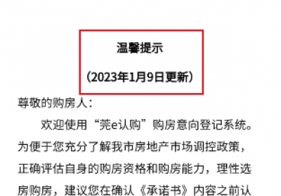 最新消息!昨天(1月9日)东莞市住建局更新了“莞e认购”小程序对“关于差别化住房信贷政策”等内容进行了调整自2023年1月6日起,东莞市执行的住房信贷政策。首套房(无贷款记录)最低…