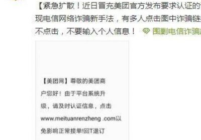 公安部紧急预警!所有美团的用户!这个链接千万别点!全国多地出现电信网络诈骗新手法有多人点击下图诈骗链接6日,公安部刑侦局发布预警:近日,有犯罪分子冒充美团官方平台发送要求商户认证的…