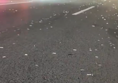 9月27日凌晨,有网友发布视频称,开车行驶至广东省东莞市石碣快速路上时,一辆大货车一路撒落铁钉,沿途有多辆车中招。 这位驾车网友表示,“这里撒了好多像铁钉一样的东西,看着很尖,像小…