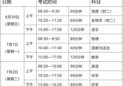 1月23日,广东省教育厅公布了2024年省统一命题地市的初中学业水平语文、数学、英语、道德与法治、历史、地理、物理、化学和生物学等科目考试时间。根据安排,考试将于6月30日—7月2…