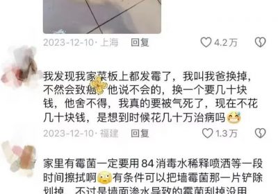 有网友发帖表示,自己咳嗽了2、3个月,也去做了各种检查、拍了CT,都没发现什么异常,中医西医都试了,就是没治好咳嗽。后来,发现家里的马桶下面有密密一圈黑色的霉菌,其实就是曲霉菌的聚…