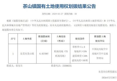 昨日东莞将建机场的消息在微信疯传东莞人终于可以在家门口坐飞机了?!一切都要从2月27日东莞市自然资源管理局的一则通告说起公告显示东莞市茶山镇拟划拨国有8279.97平方米的土地给中…