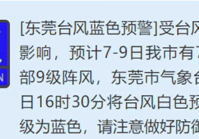 台风要来了!今天(10月6日)16时30分东莞将台风白色预警信号升级为蓝色!东莞将有暴雨+9级大风!东莞台风预警升级!将有暴雨+9级大风!东莞气象局预计,“小犬”将以10公里左右时…