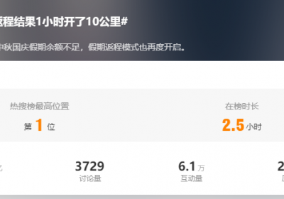 提前返程结果1小时开了10公里?一早这个话题词冲上热搜第一双节假期返程模式开启网友表示返程的高速导航一路飘红10多公里的路程能走1个多小时今天你踏上返程路了吗?据悉,昨天多地已陆续…