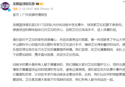 2月18日,广州龙狮男篮当家后卫、知名篮球运动员郭艾伦自曝在训练中被队友非常规动作戳伤眼睛,结膜破碎缝了40多针,本赛季提前报销。今日(20日),他再发视频回应此事,称戳伤他眼睛的…